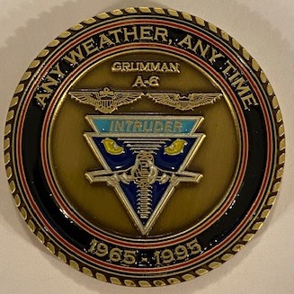 Another AV8RSTUFF creation: This is the VA-35 BLACK PANTHERS Intruder ‘Challenge Coin’ with the Squadron logo on the front and the A-6E Intruder info/logo on the back.