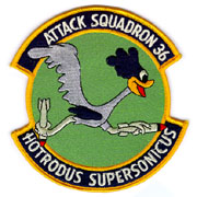 Located at NAS Oceana, the Roadrunners were one of the nine A-6E Intruder squadrons stationed on the East Coast. This, the third of their three squadron patch designs, symbolizes their squadron mascot. The third, the Warner Brothers cartoon roadrunner, was actually the patch of the 1960s squadron which flew A-4s. This squadron was disestablished in 1970, although this patch was also produced and sold by the later VA-36 in the 1980s as an historical/retro/repro item.