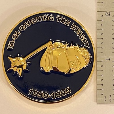 This is the large, thick, heavy version of the VA-52 KNIGHT RIDERS Intruder ‘Challenge Coin’ with the Squadron logo on the front and the Knight/Mace on the back.
