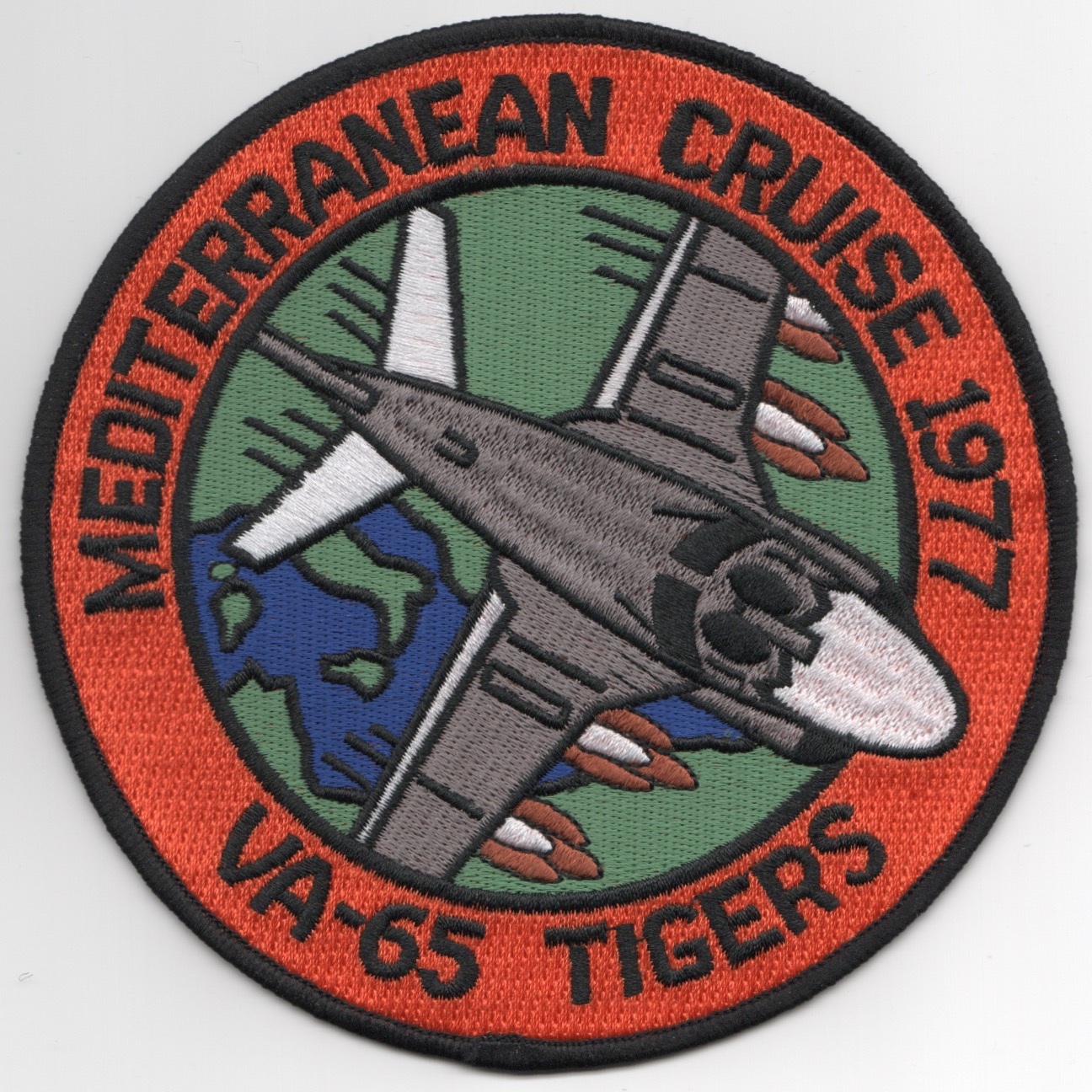 This is an exact replica of the deployement patch created for Attack Squadron (ATKRON)-65 for their 1977 Mediterranean tour onboard the USS Independence (CV-62) and attached with Carrier Air Wing SEVEN (CVW-7)….This patch does not have velcro attached.