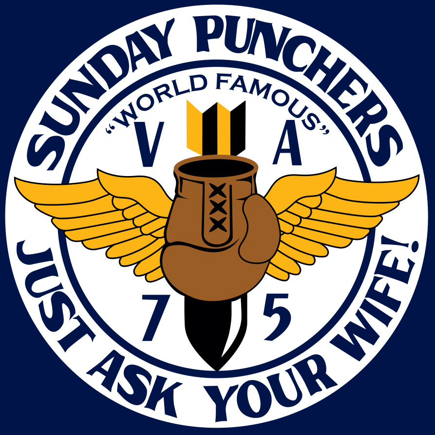 (Another AV8RSTUFF Creation): This is the dark blue version of the VA-75 Sunday Puncher ‘ASK YOUR WIFE’ T-shirt. Below (triangle) is the front of the shirt and (circle) is the back of the T-shirt…..awesome. Get them while they last!