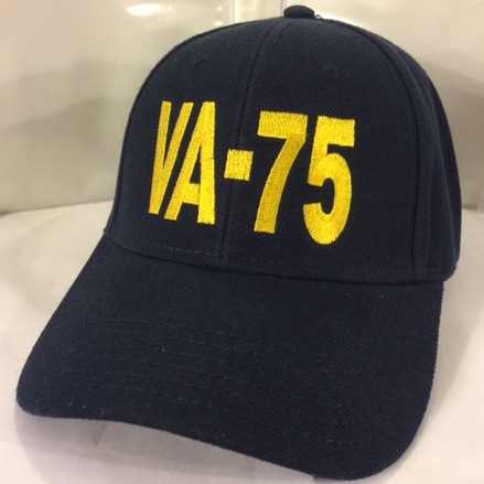 This is the “text only” version of the VA-75 Squadron Ballcap in the dark blue color with the adjustable, plastic strap in the back.
