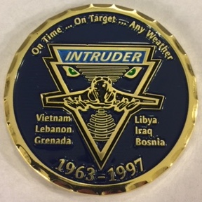 Another AV8RSTUFF creation: This is the Sunday Puncher Intruder ‘Challenge Coin’ with the Squadron logo on the front (seen) and the A-6E Intruder info/logo on the back (below).