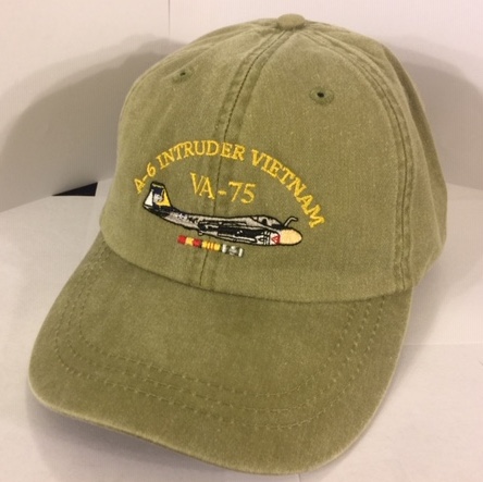 VA-75 ‘Intruder Vietnam’ Ballcap (Khaki/ Directly Embroidered onto the cap) and has the three combat ribbons underneath.
