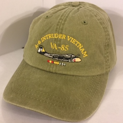 VA-85 ‘Intruder Vietnam’ Ballcap (Khaki/ Directly Embroidered onto the cap) and has the three combat ribbons underneath.