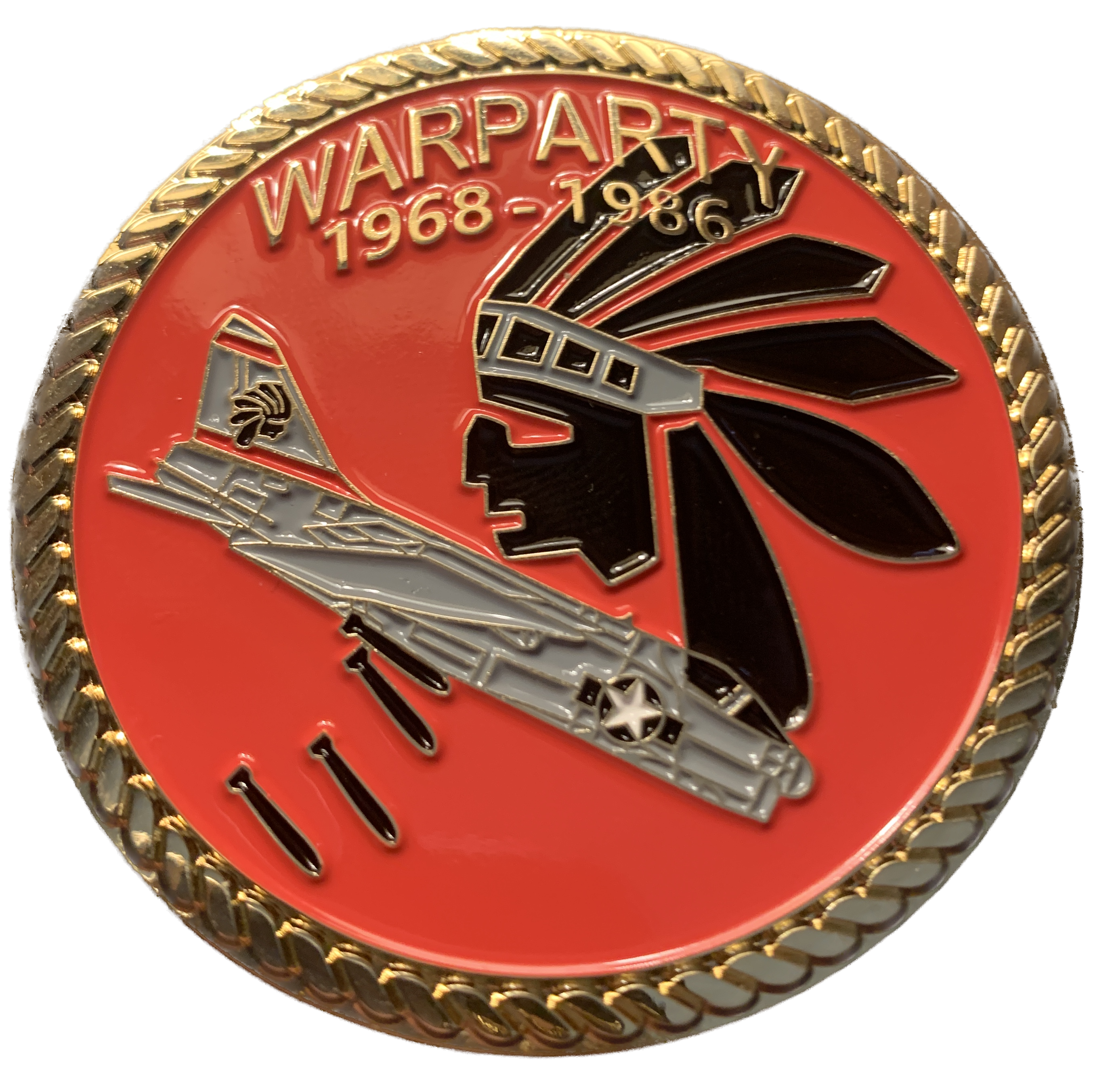 This is the back of the Challenge Coin for the VA-87 Golden Warriors that flew the A-7E Corsair