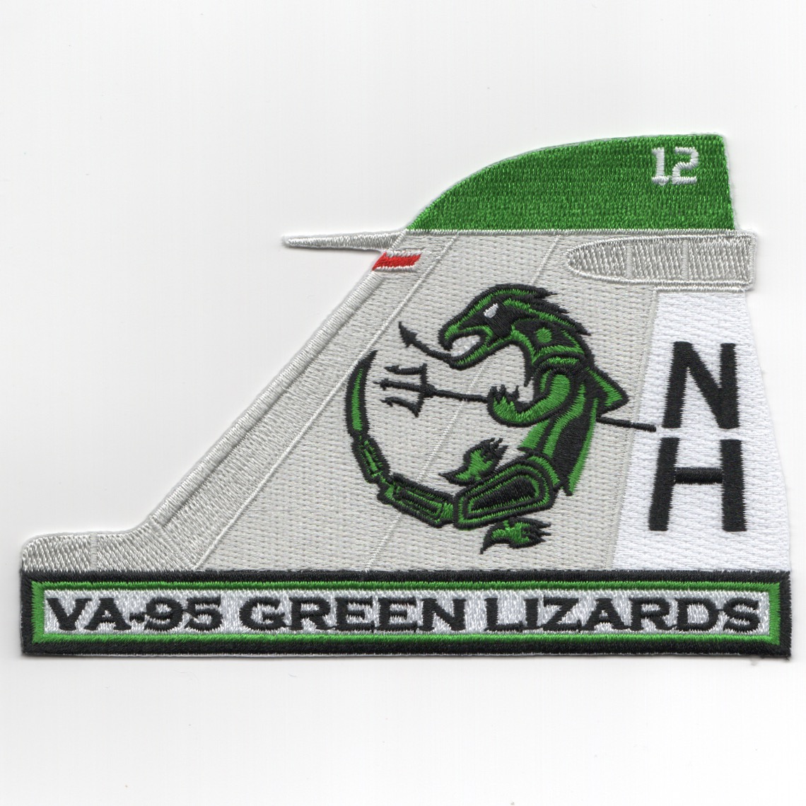 (Another AV8RSTUFF Creation): The ‘Green Lizards’ of VA-95 were established in April 1972 and operated the Grumman A-6E and KA-6D Intruder as part of CVW-11 onboard the USS Lincoln (CVN-72). They conducted operations in the Persian Gulf immediately following Desert Storm where the squadron deployed 3 detachments to Sheik Isa air base in Bahrain. This is the green/gray version of their ‘A-6 Tail Fin with the ‘NH’ Tailcode and does not come with velcro attached.