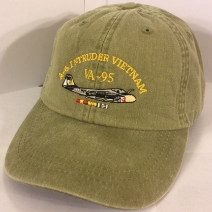 VA-95 ‘Intruder Vietnam’ Ballcap (Khaki/ Directly Embroidered onto the cap) and has the three combat ribbons underneath.