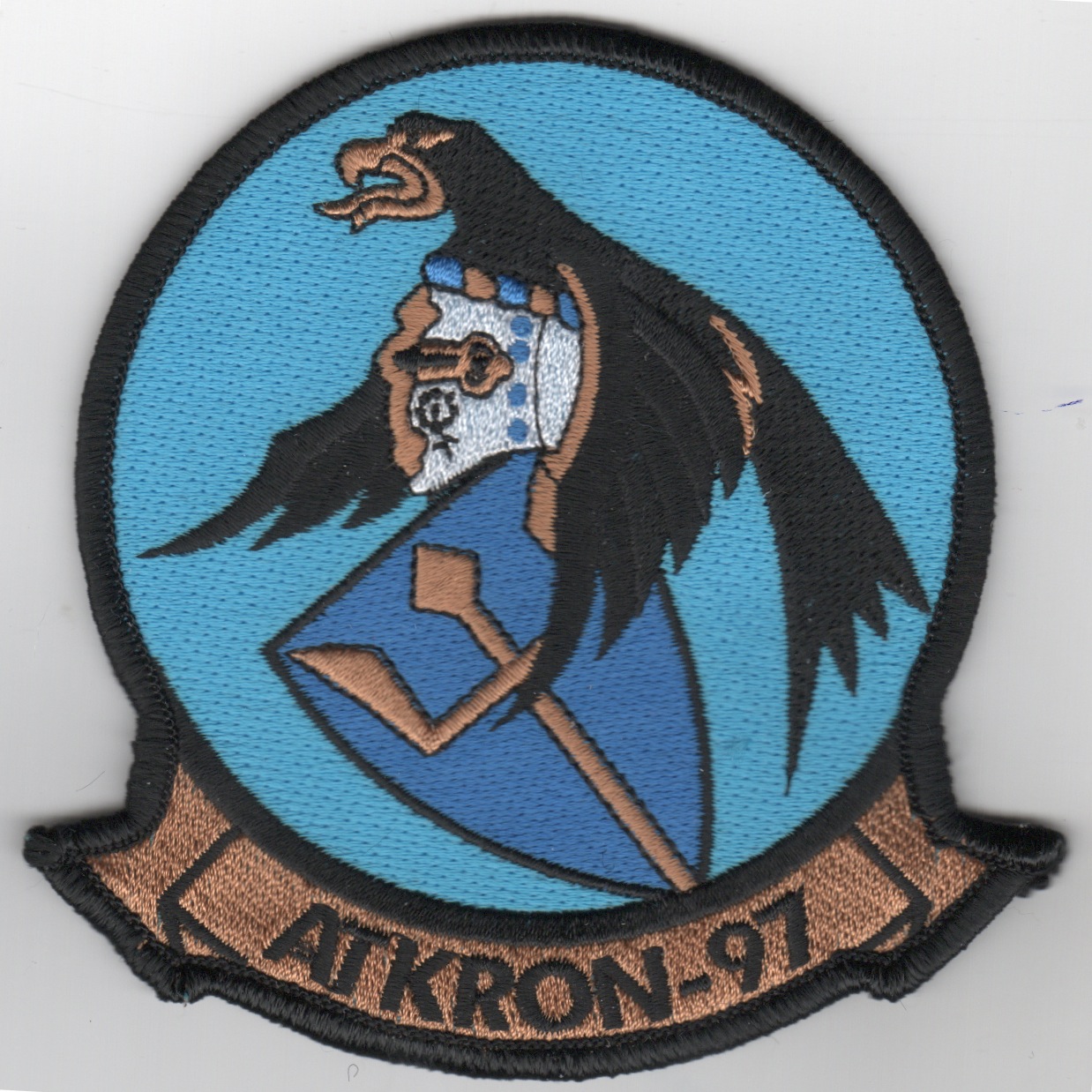 (Another AV8RSTUFF Creation): This is the historical squadron patch for the VA (now VFA)-97 ‘Warhawks’. VA-97 was established on 1 June 1967 and departed San Diego embarked on USSÊConstellation for the squadron’s first WESTPAC deployment. On 28 June 1968 the squadron conducted its first combat missions, flying the A-7A Corsair II, against targets in Vietnam. This patch does not come with velcro attached. Very historical squadron……