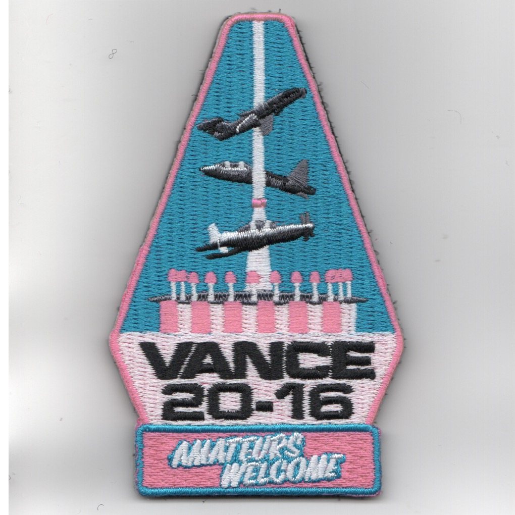 This is the class patch for Class 20-16 that flies out of Vance AFB, OK in the T-6A Texan II that says “AMATEURS WELCOME” in some very bright colors. This patch does have velcro attached.
