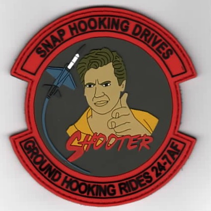 The mission of the 71st Flying Training Wing is to develop professional Airmen, deliver world-class U.S. & Allied pilots and deploy combat ready warriors. Vance AFB is responsible for training Air Force and allied student pilots for worldwide deployment and Aerospace Expeditionary Force support. The wing reports to Air Education and Training Command (AETC). This is the PVC (rubber) version of the class patch for Class 24-7AF (the USAF class). It says “SNAP HOOKING DRIVES” (top), “GROUND HOOKING RIDES 24-7AF” (bottom), and shows the “SHOOTER” in the center. This patch does come with velcro attached.