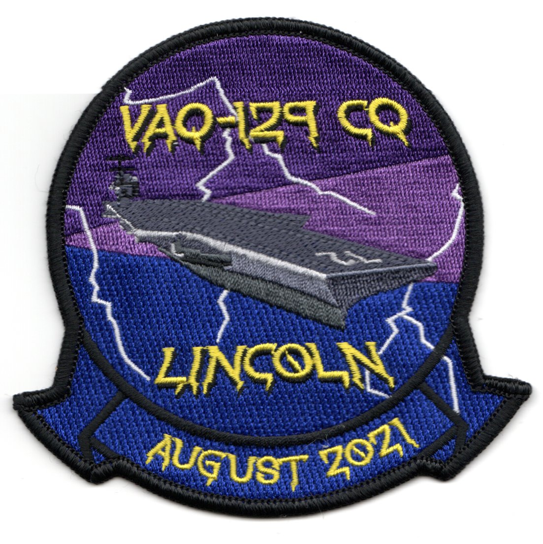 (Another AV8RSTUFF Creation): This is the blue/purple version of the squadron-shaped patch created for the Carrier Qualification (CQ) detachment for the August 2021 qual period. The squadron trains Pilots and WSOs that fly the E/A-18G Growler. This patch does not come with velcro attached.