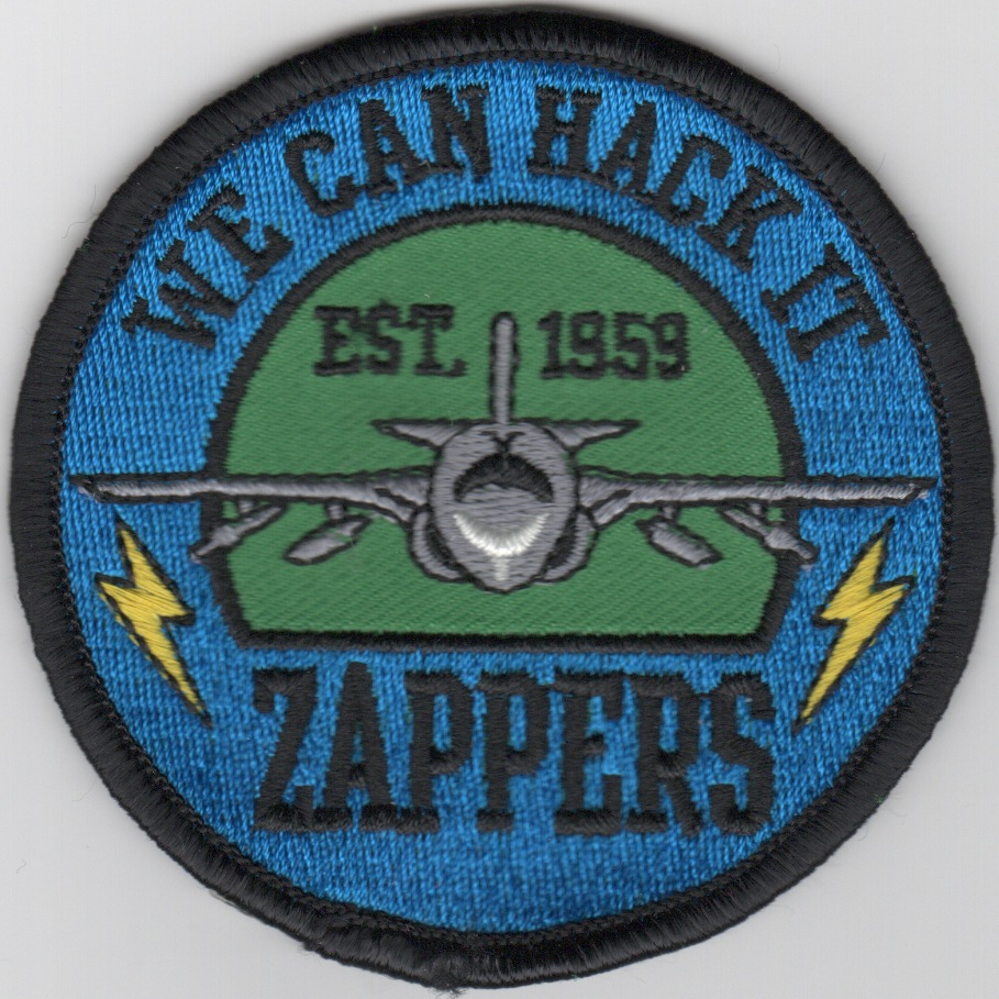 This is the blue version of one of the aircraft patches worn by the VAQ-130 ‘Zappers’ showing the aircraft head on and says “”””We Can Hack It””””.