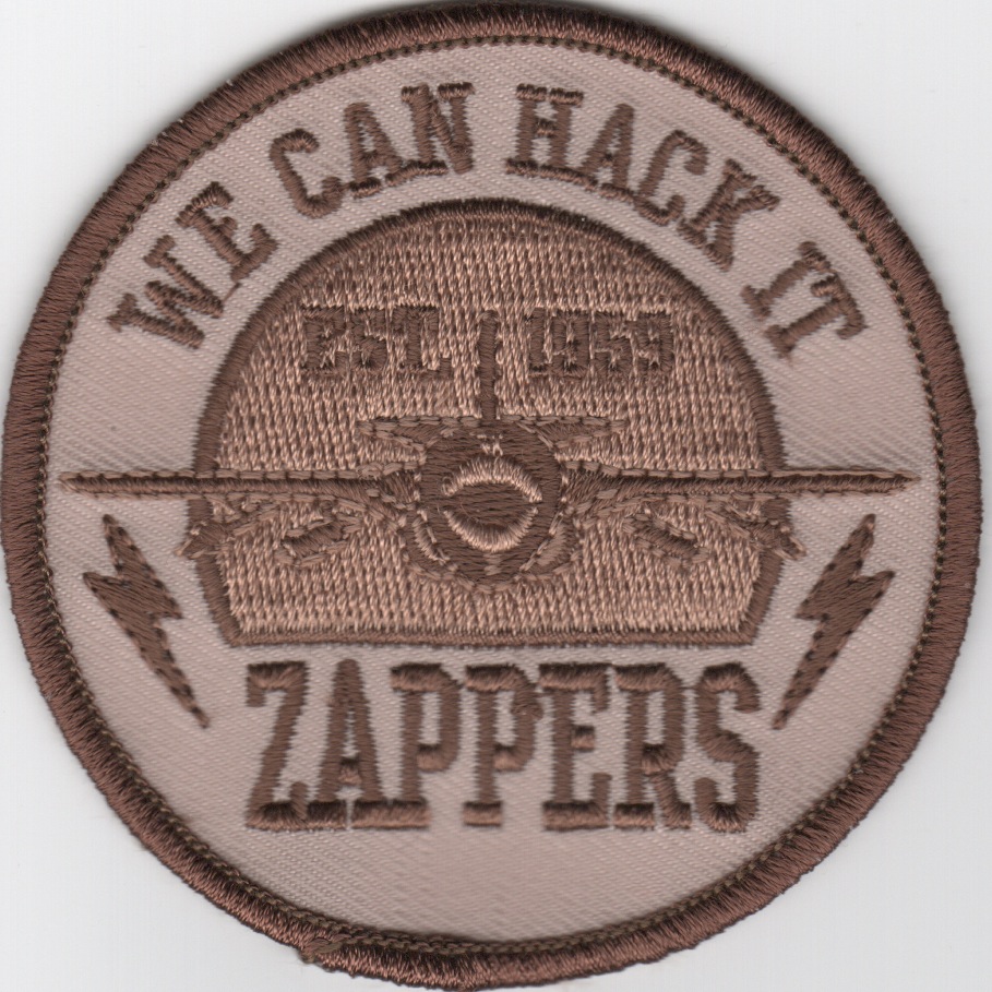 This is the desert version of one of the aircraft patches worn by the VAQ-130 ‘Zappers’ showing the aircraft head on and says “”””We Can Hack It””””.