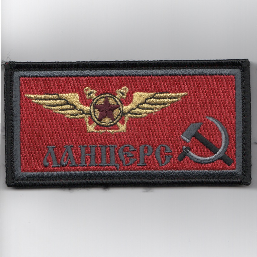 Another AV8RSTUFF creation: This is the “RED AIR” NFO/WSO nametag worn by the VAQ-131 ‘Lancers’ when they fly in the “adversary” role. They now fly the EA-18G Growler out of NAS Whidbey Island, WA. This nametag says (in Cyrillic language) ‘LANCERS’ and does come with velcro already attached. Only have a few, so get them while they last!!