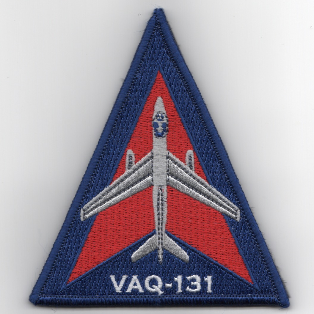 In November 1968, VAH-4 received the EKA-3 version of the Skywarrior and was redesignated as Tactical Electronic Warfare Squadron 131 (VAQ-131). In 1971, they became the second squadron in the U.S. Navy to receive the Standard version of the EA-6B Prowler. The squadron transitioned to the Expanded Capability (EXCAP) version of the Prowler in 1976, to the Improved Capablility (ICAP) Prowler in 1978, and to the ICAP II Prowler in 1984.[4] In May 2014, they transitioned to the Boeing EA-18G Growler, which they currently operate. The EA-18G expanded the squadron’s capabilities to enable more effective prosecution of radar and Surface-to-Air Missile (SAM) sites in an Integrated Air Defense System (IADS), both through air-to-ground weapon employment and precision electronic attack, the latter being the Growler’s niche capability. The EA-18G is also a capable air-to-air combat platform. This is their ‘THROWBACK’ version of the aircraft triangle patch and does come with velcro attached.