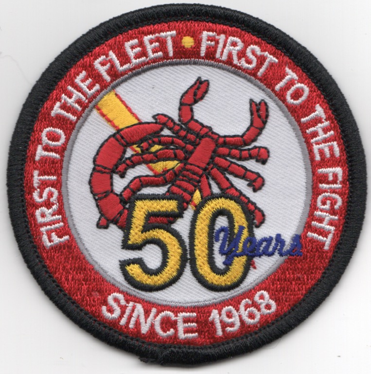 This is just in direct from the “”””SCORPIONS”””” Coffee Mess. This is the ‘red-white’ version of the 50th Anniversary bullet patch created for VAQ-132. It says “”””SINCE 1968″””” (bottom) and “”””50 YEARS”””” (middle). This patch does not come with velcro attached.