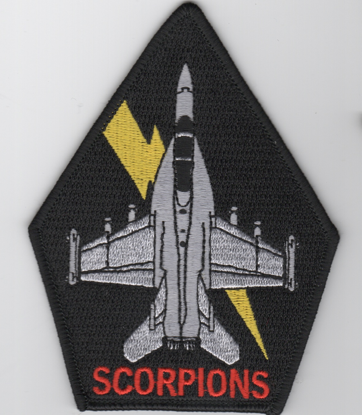 This is the black version of the aircraft “coffin” patch for the VAQ-132 ‘Scorpions’ that fly the EA-18 ‘GROWLER’ out of NAS Whidbey Island, WA.