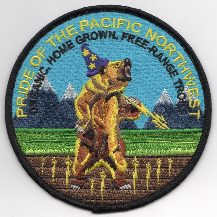 (Another AV8RSTUFF Creation): Electronic Attack Squadron 133 (VAQ-133) is an EA-18G Growler squadron of the United States Navy based at NAS Whidbey Island, WA. Beginning in 2013, the squadron began the transition from the EA-6B ‘PROWLER’ to the EA-18G ‘GROWLER’. Upon completion of the transition in spring of 2014, they returned to their attachment to Carrier Air Wing Nine (CVW-9). The squadron’s nickname is “Wizards” and its radio callsign is “Magic”. This is one of the cruise patches we created for them that says ‘PRIDE OF THE PACIFIC NORTHWEST’ along the top and has an extremely detailed bear holding the lightning bolt while wearing Merlin’s hat. There are tiny lightning bolts “growing” from the soil also (maybe a play on the tulip fields there?). This patch does not have velcro attached.