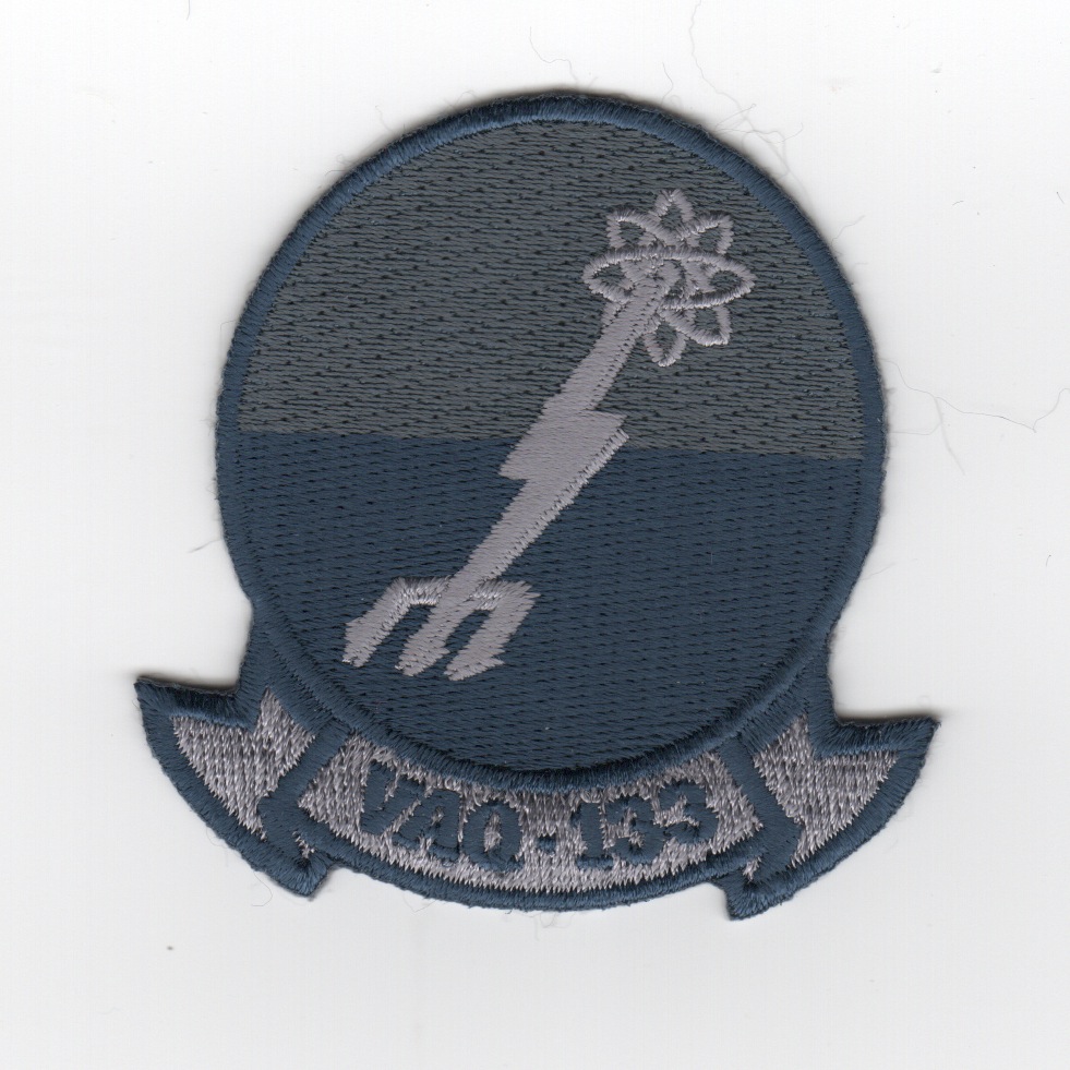 This is the small version of the aqua-colored version of the newly re-established squadron patch for VAQ-133 that flew the EA-6B Prowler out of NAS Whidbey Island, WA. They were decommissioned in June 1992, then recommissioned in 1996. They currently operate the F/A-18G “Growler”.