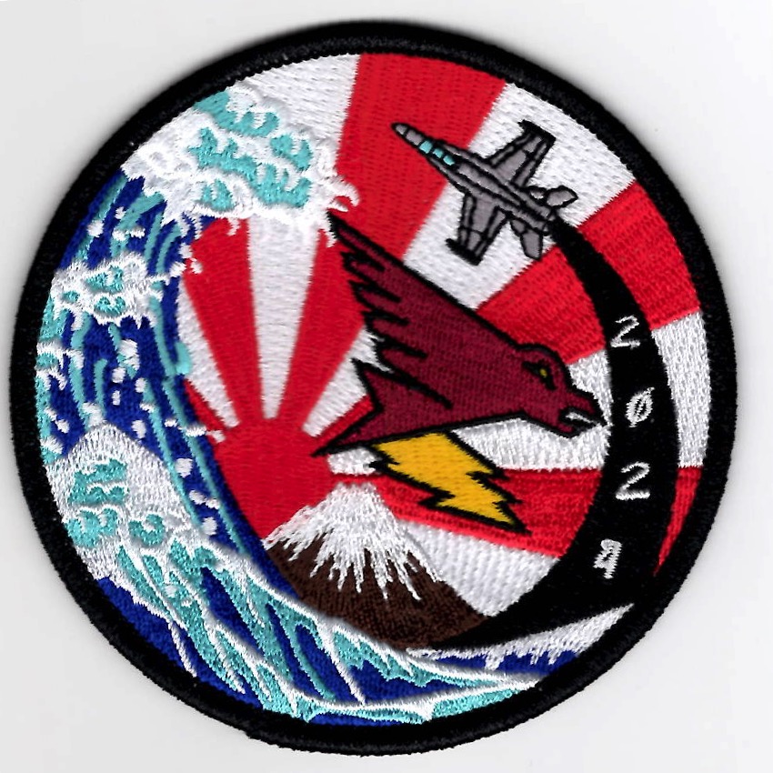 This is the “SHOULDER” patch for the 2024 ‘Japan-DET’ for the GARUDAS for their time there, showing the TSUNAMI wave that hit there a few years back, the red/white sun-rays, and the mascot/logo in the center. This patch does not come with velcro already attached.