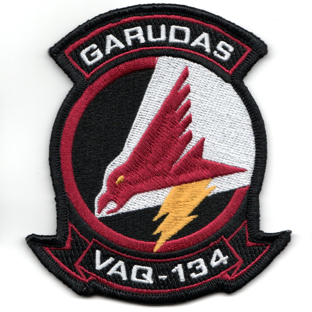 This is the color version of the current squadron patch for the VAQ-134 ‘Garudas’ that flew the EA-6B Prowler, but now fly the E/A-18G Growler, out of NAS Whidbey Island, WA. This patch does not come with velcro already attached.