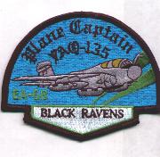 This is the “1/2 Moon” Plane Captain patch for the VAQ-135 “Black Ravens” that operated the Grumman EA-6B Prowler out of NAS Whidbey Island, WA. They were established in May 1969 and participated in Operation Desert Storm from the USS Abraham Lincoln (CVN-72).