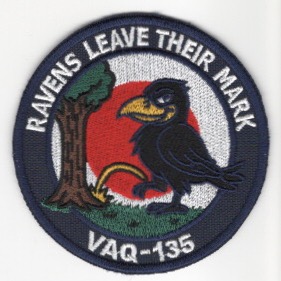 The VAQ-135 “Black Ravens” operate the E/A-18G ‘GROWLER’ out of NAS Whidbey Island, WA. They were established in May 1969 and participated in Operation Desert Storm from the USS Abraham Lincoln (CVN-72) while flying the venerable EA-6B Prowler. This patch was (no kidding) found in a small, Korean embroidery shop that was made for the squadron’s participation in one of the US/Korean joint exercises. It says “RAVENS LEAVE THEIR MARK” (top) and does not come with velcro attached.