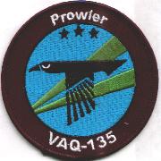 This is the “Prowler” shoulder patch for the VAQ-135 “Black Ravens” that operated the Grumman EA-6B Prowler out of NAS Whidbey Island, WA. They were established in May 1969 and participated in Operation Desert Storm from the USS Abraham Lincoln (CVN-72). This is the patch worn by those in the squadron not in specific shops (see below).