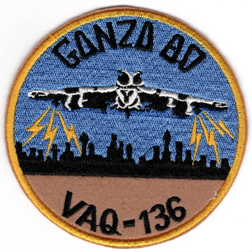 (Another AV8RSTUFF exact reproduction for VAQ-136): VAQ-136’s first major deployment with CVW-5 began 14 July 1980. Highlights of this Indian Ocean cruise included port calls to Mombassa, Kenya and the Philippines. USS Midway spent 90 days on “Gonzo Station”, returning home to Yokosuka, Japan on 26 November 1980. This is an exact reproduction of that patch for them as a “historical throwback” and no velcro is attached.