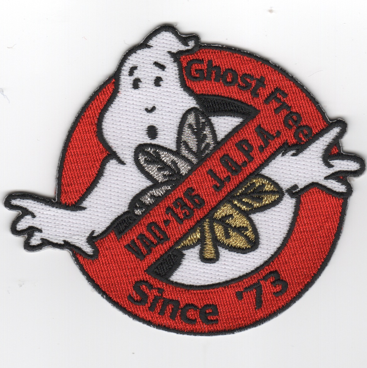 The ‘Gauntlets’ of VAQ-136 are based at NAF Atsugi, Japan and flew the Grumman EA-6B Prowler. They were established in April 1973, then transitioned from the USS Midway (CV-41) to the USS Independence (CV-62) in August 1991 when the latter became home-ported with CVW-5 at Yokosuka. This is their “JOPA” patch and says “GHOST FREE SINCE ’73” at the bottom.