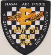 The ‘Rooks’ of VAQ-137 are based out of NAS Whidbey Island, WA and fly the Navy’s jamming platform, the Grumman EA-6B Prowler. This is the 2006 Battle Readiness ‘E’ patch. It is quite large. It also came directly from the squadron.