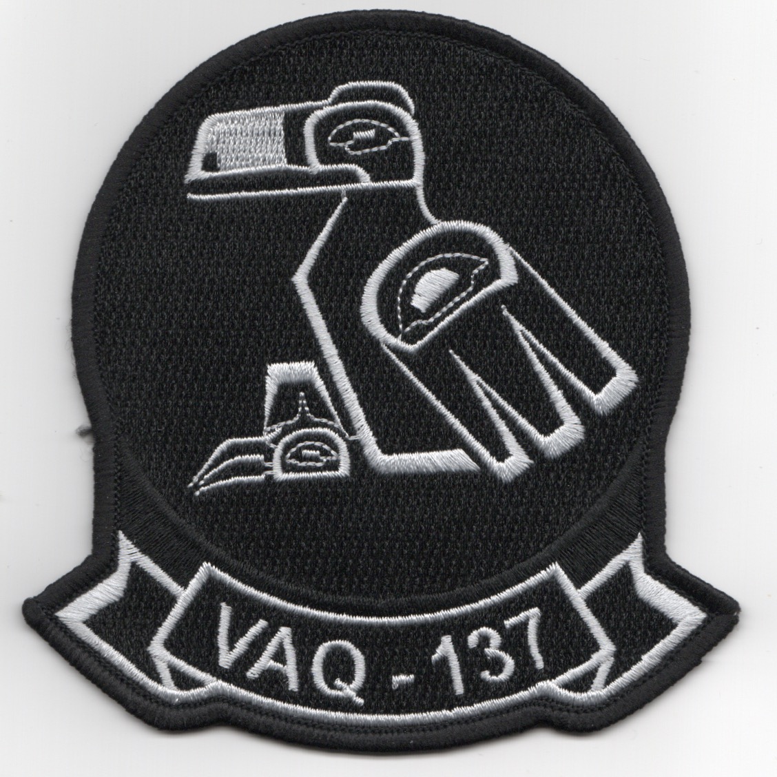 The ‘Rooks’ of VAQ-137 were based out of NAS Whidbey Island, WA and fly the Navy’s jamming platform, the Grumman EA-6B Prowler. They were established in December 1973, and flew with CVW-1 onboard the USS America (CV-66) during the Persian Gulf War. This is the “black” version of their squadron patch and does not come with velcro attached.