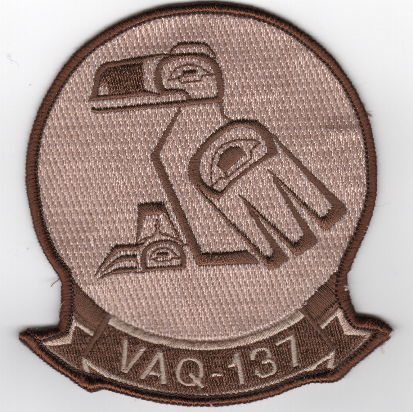 The ‘Rooks’ of VAQ-137 were based out of NAS Whidbey Island, WA and fly the Navy’s jamming platform, the Grumman EA-6B Prowler. This is the desert version of their squadron patch they wear while in the Persian Gulf theater on their desert colored flight suits.