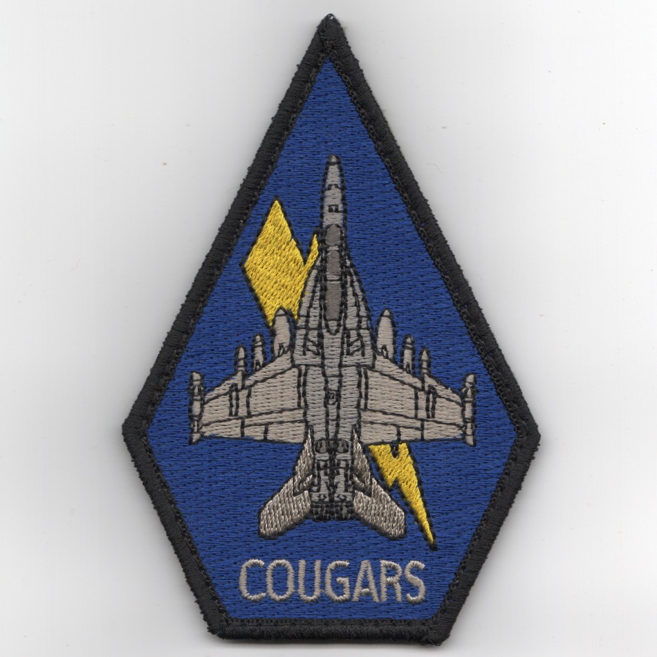(Obtained from their supplier): The ‘Cougars’ of VAQ-139 were established in July 1983 and operated the EA-6B Prowler before transitioning to the E/A-18 ‘GROWLER’. This is the dark blue version of the VAQ-139 ‘COFFIN’ patch depicting the planform of their GROWLER aircraft. This patch does not come with velcro attached.