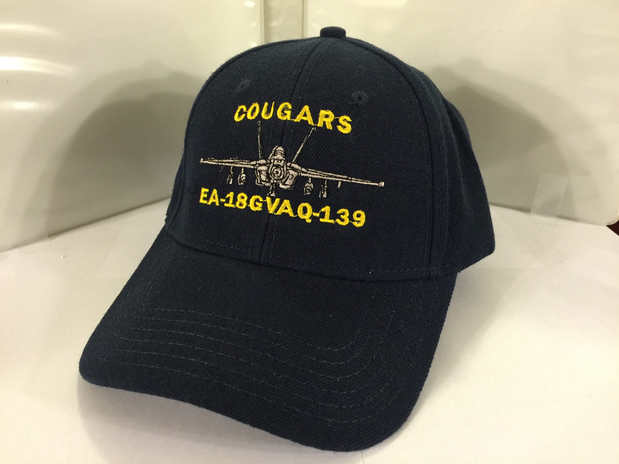 This is the dark blue ballcap with the EA-18G embroidered with the EA-18G and the Squadron Designator embroidered under the aircraft!