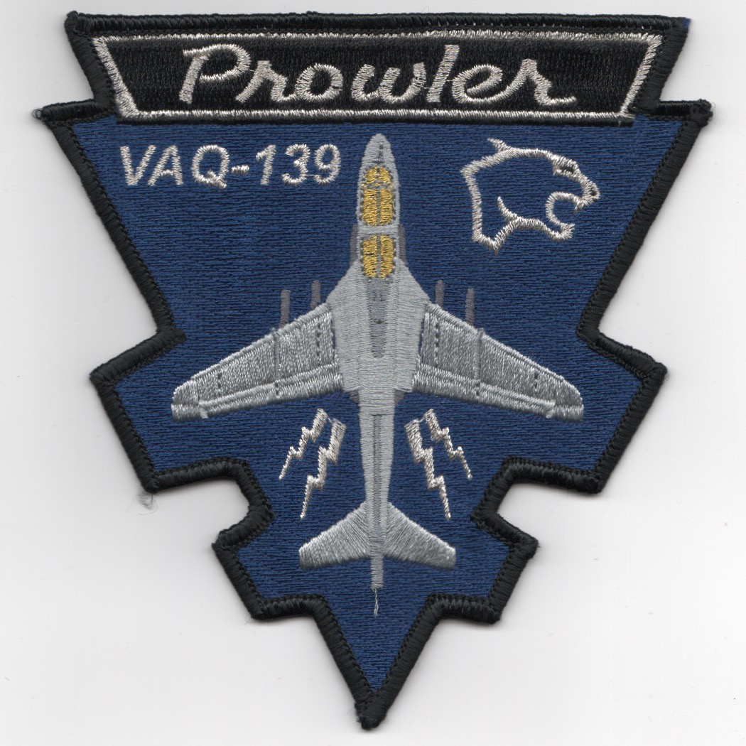(Another AV8RSTUFF Creation): The ‘Cougars’ of VAQ-139 were established in July 1983 and operated the EA-6B Prowler before transitioning to the E/A-18 ‘GROWLER’. This is the dark blue version of the VAQ-139 ‘PROWLER PLANFORM’ patch with the ‘Cougar’ Mascot logo in the upper right. This patch does not come with velcro attached.