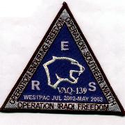 The ‘Cougars’ of VAQ-139 were established in July 1983 and operated the EA-6B Prowler as part of CVW-14 aboard the USS Kennedy (CV-67). This is the cruise patch they created for their deployment and participation in Operation Iraqi Freedom/Operation Southern Watch/Operation Enduring Freedom.