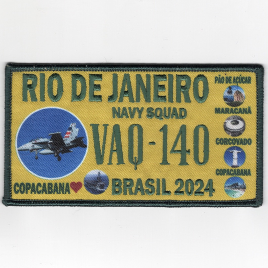 (Another AV8RSTUFF creation): Electronic Attack Squadron 140 (VAQ-140) is a US Navy electronic attack squadron. Known as the “Patriots”, the squadron operates the EA-18G Growler from NAS Whidbey Island, WA. This is one of the cruise patches they created for their 2024 deployment when they had a port call in Brazil and does not come with velcro attached.