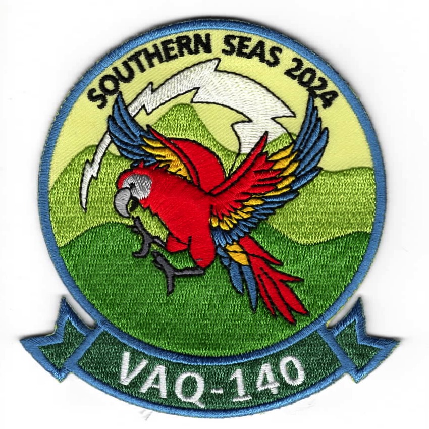 (Another AV8RSTUFF creation): Electronic Attack Squadron 140 (VAQ-140) is a US Navy electronic attack squadron. Known as the “Patriots”, the squadron operates the EA-18G Growler from NAS Whidbey Island, WA. They deploy aboard USSÊHarry S. Truman using the callsign “Talon”. This is the mountain background version of their *2024 SOUTHERN SEAS* Cruise patch. This patch does NOT come with velcro attached.