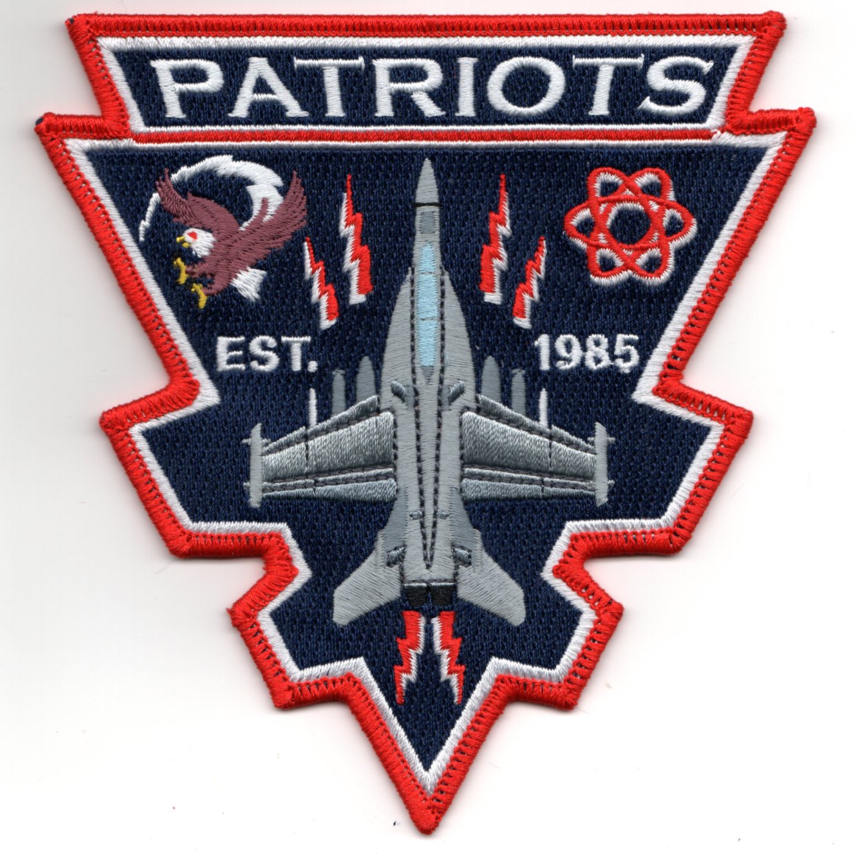 (Another AV8RSTUFF creation): Electronic Attack Squadron 140 (VAQ-140) is a US Navy electronic attack squadron. Known as the “Patriots”, the squadron operated the EA-6B (but now the EA-18G Growler) from NAS Whidbey Island, WA. This patch was created to pay homage to their predecessor, the EA-6B Prowler with the term ESTABLISHED 1985, but with the planform of the most recent aircraft, the EA-18G Growler. This patch DOES come with velcro attached.