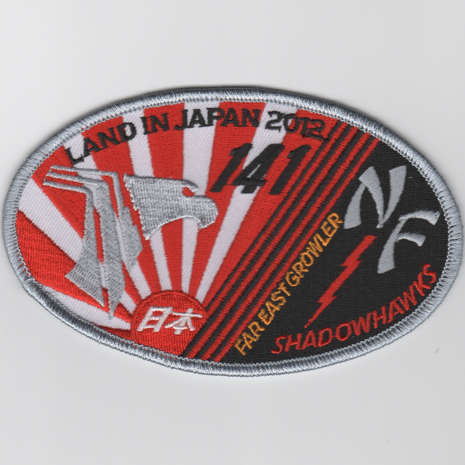 The “Shadowhawks” of VAQ-141 NOW fly the McDonnell Douglas E/A-18G “Growler” out of NAS Whidbey Island, WA. This patch shows their “Landing in Japan” in 2012, commemorating the arrival at their new home base. This patch does not come with velcro attached.