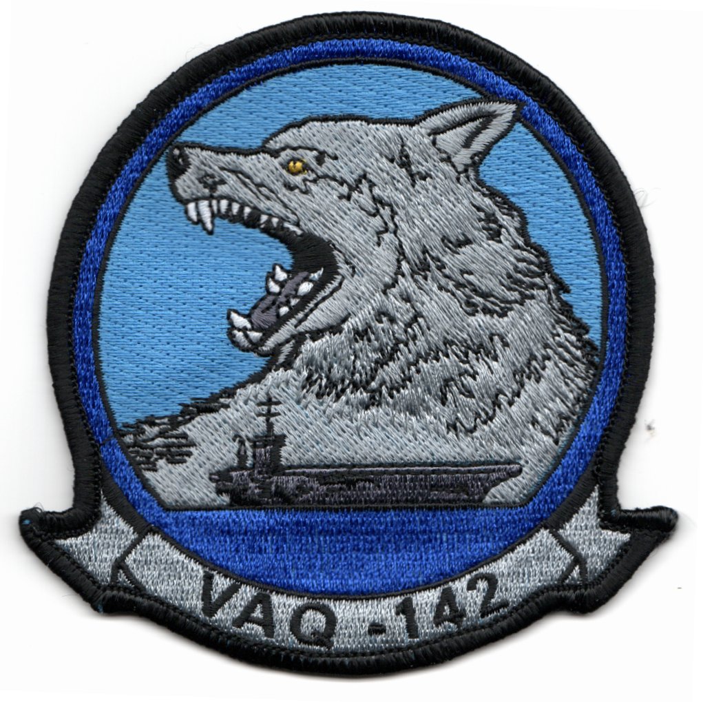 Electronic Attack Squadron 142 (VAQ-142), also known as “The Gray Wolves”, is an EA-18G Growler squadron of the United States Navy. They specialize in electronic attack and are currently stationed at Naval Air Station Whidbey Island, Oak Harbor, Washington.They are attached to Carrier Air Wing Eleven (CVW-11), aboard USS Nimitz (CVN-68). Their tailcode is NH and their ATC callsign is “GRIMM”. This is the current (blue) version of their squadron patch and does not come with velcro attached.