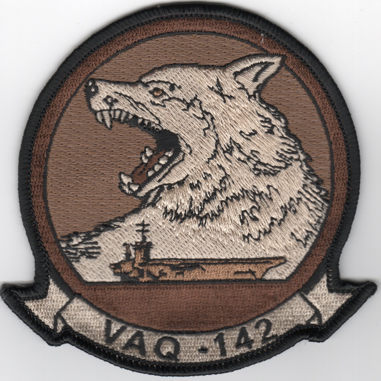 Electronic Attack Squadron 142 (VAQ-142), also known as “The Gray Wolves”, is an EA-18G Growler squadron of the United States Navy. They specialize in electronic attack and are currently stationed at Naval Air Station Whidbey Island, Oak Harbor, Washington.They are attached to Carrier Air Wing Eleven (CVW-11), aboard USS Nimitz (CVN-68). Their tailcode is NH and their ATC callsign is “GRIMM”. This is the desert version of their squadron patch and does not come with velcro attached.