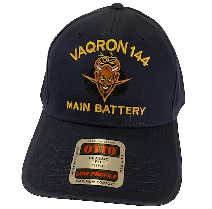 This is the dark blue ballcap with the adjustable plastic strap in the back that shows the Squadron logo and the designator for the VAQ-144 *MAIN BATTERY*!!