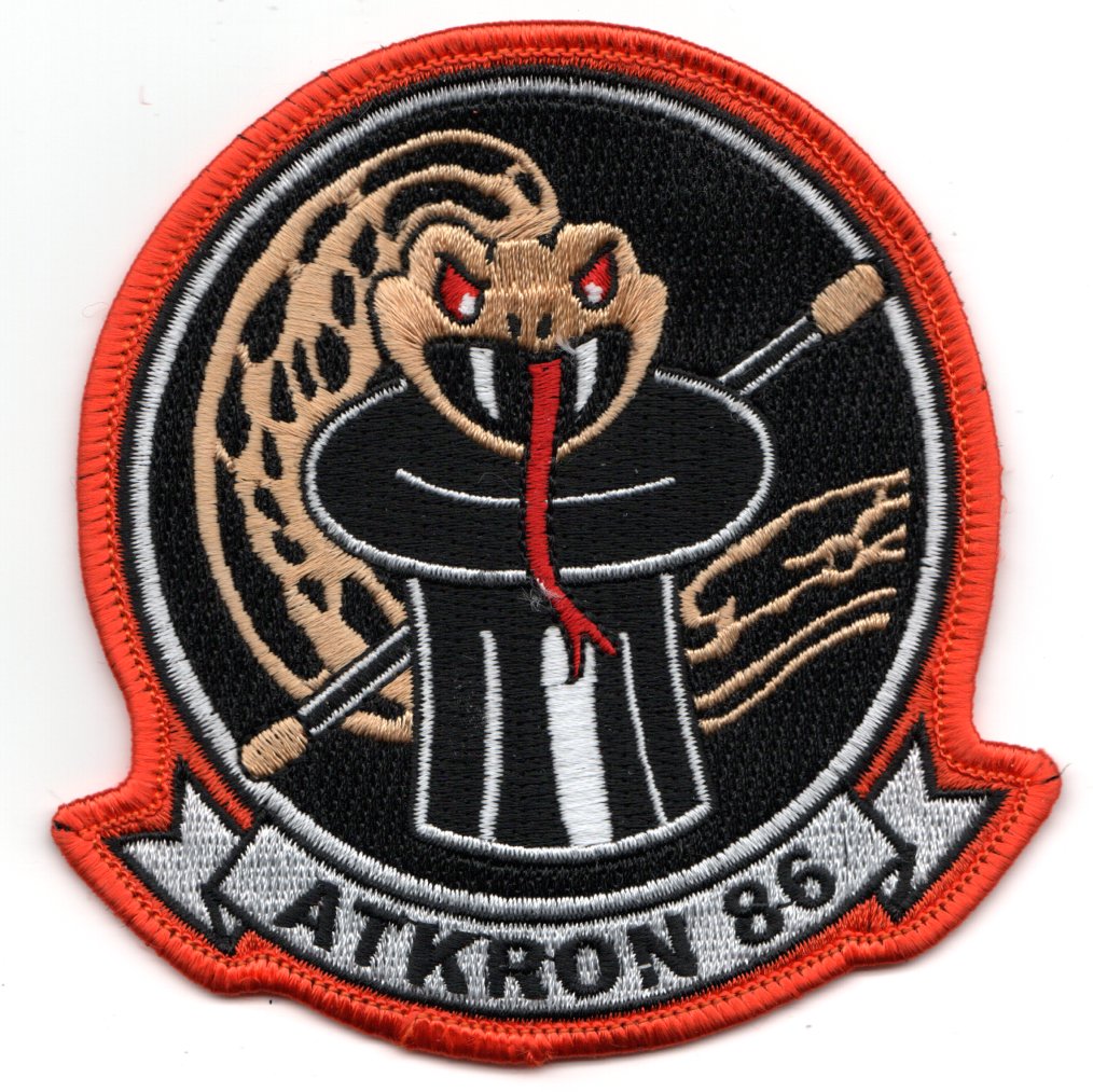 Attack Squadron EIGHT SIX (VA-86) traces its origins to Fighter Squadron 921, based at Naval Air Station St. Louis, Missouri, during the Korean War in February 1951. In February 1953, the squadron was re-designated VF-84 while deployed to Guantanamo Bay, Cuba, aboard USS ANTIETAM (CV 36). In July 1955, the squadron was re-designated VA-86 Sidewinders. From 1955 to 1987, Sidewinders flew the F4-U “Corsair,” F8F-2 “Bearcat,” F9F-5 “Panther,” F7U-3M “Cutlass,” also known as the “Ensign Eater,” A4D-1 “Skyhawk” and A-7A/C/E “Corsair.” During these transitions, Sidewinders made numerous deployments to the Mediterranean and Caribbean Seas. The North Atlantic, the Western Pacific and the Indian Oceans in various aircraft carriers. This patch does not come with velcro attached.