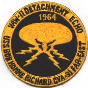 This is an original (old) reproduction of the yellow “”””Echo”””” detachment patch of VAW-11 back in 1964. This one shows what looks like a “”””4-legged”””” octopus. This was while aboard the USS Bon Homme Richard (CVA-31).