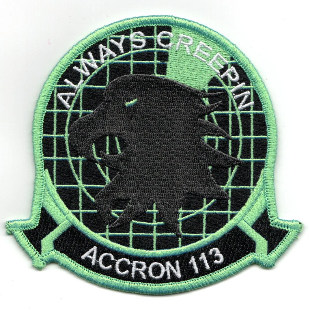 Another AV8RSTUFF Creation: This is the neon/black version of the squadron patch showing the radar scope as the background and a dark gray mascot head. This was created for the squadron for their role in the airwing and does not come with velcro attached.