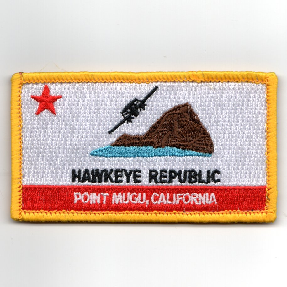 (Another AV8RSTUFF Creation): This is the VAW-113 ‘HAWKEYE REPUBLIC’ Flag patch that says POINT MUGU, CA along the bottom. It shows the E-2D aircraft over the CA mountain and the Pacific Ocean, and this patch does come with velcro attached.
