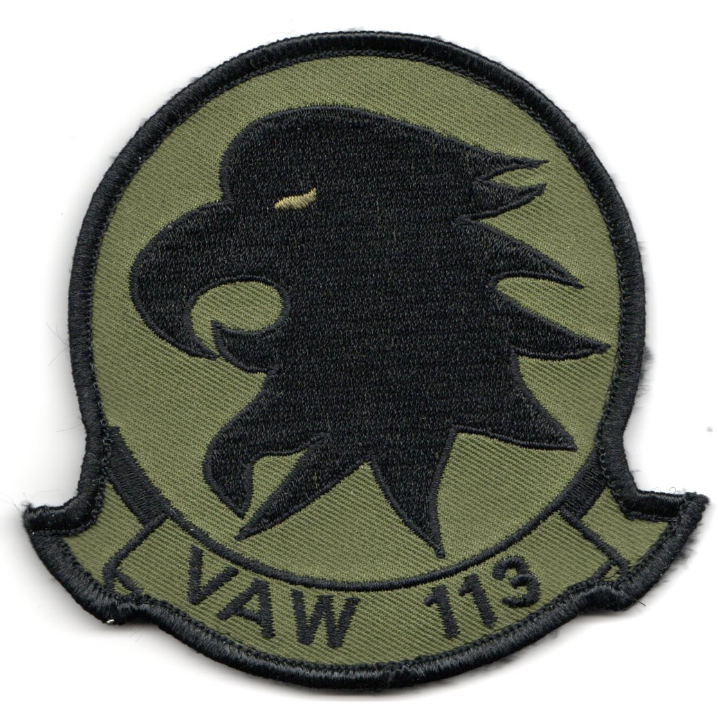 (Another AV8RSTUFF Creation): This is the OCP/subdued version of the “Black Eagles” squadron patch. Carrier Airborne Early Warning Squadron 113 (VAW-113), known as “Black Eagles”, was established on 20 April 1967 flying the E-2A Hawkeye. Check WIKIPEDIA for a very long and distinguished flying career for the squadron! (For example), In 2010, VAW-113 completed a work-up cycle which included the multinational RIMPAC 2010. In February 2011, the squadron deployed aboard the USS Ronald Reagan in support of Operation New Dawn in Iraq and Operation Enduring Freedom in Afghanistan. In March, during the transit across the Pacific, the squadron was called into action following the devastating 2011 Tohoku earthquake and tsunami in Japan. The squadron provided the airborne command of the relief effort using their Hawkeye 2000s in Operation Tomodachi. Commander of Naval Air Forces awarded the squadron with their tenth Battle ÒEÓ Award for their efforts. This patch does come with velcro attached.
